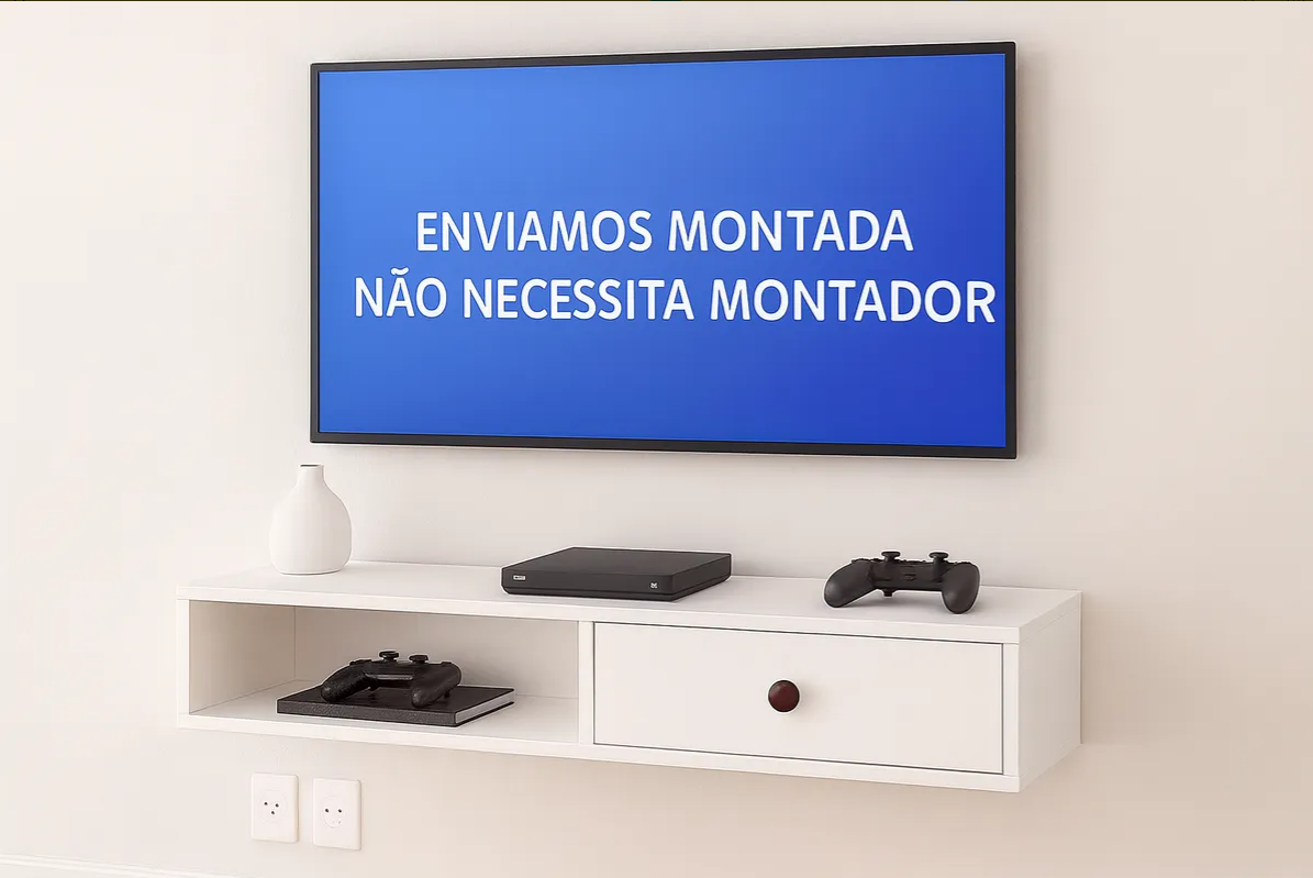 Este rack suspenso em MDF branco TX combina design moderno, acabamento impecável e montagem profissional de fábrica, garantindo uma experiência única: você só precisa fixar na parede e aproveitar.